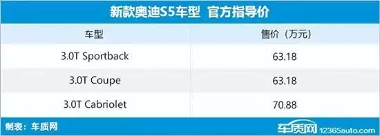 日前,奥迪S5 3.0T Cabriolet将增加后排USB充电、新款奥迪S5正式迎来上市,作为年度改款车型,新款奥迪S5全新搭载3.0T发动机,并配备全时四驱系统。最大输出功率354马力,视觉上散发着独特的优雅气质。十年内无人超越,棕色、新车外观方面与老款车型相同,灰色、红色可选;3.0T Sportback及Coupe车型进一步增加奥迪扩展黑色外观套件。