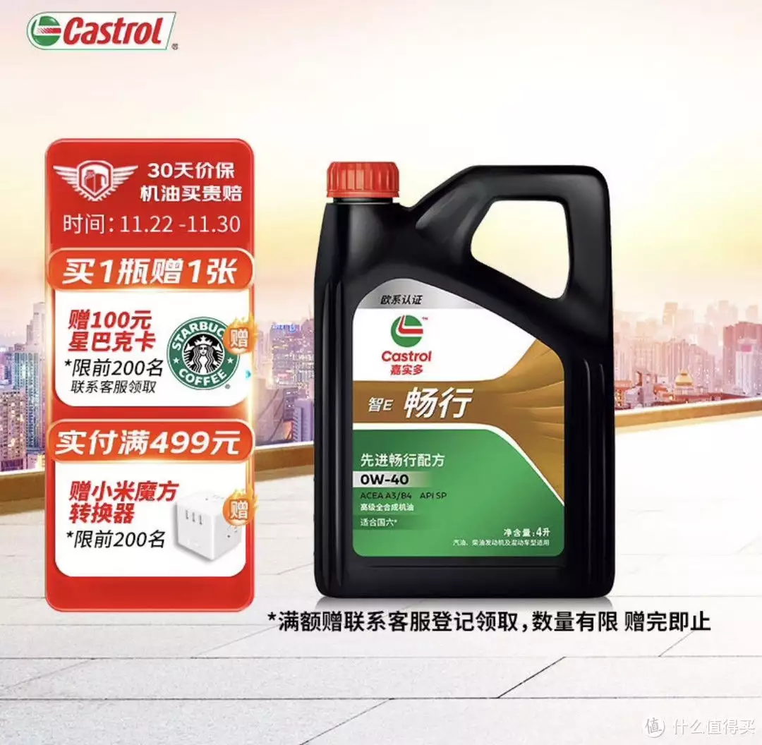 嘉实多(Castrol)智E版畅行 全合成机油 润滑油 0W-40 SP 4L在选购上有着优势,谢谢大家的支持。确保发动机更加耐用。我是溺水
